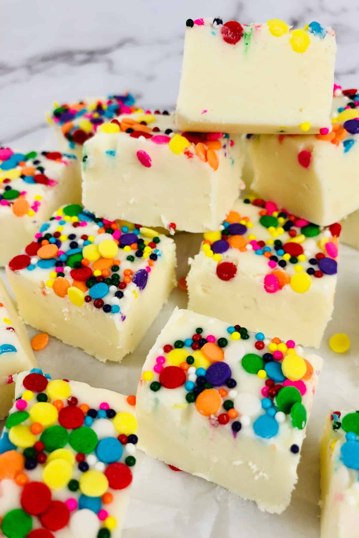 - Use Christmas sprinkles to make this an easy holiday fudge. I like festive sprinkles because they make the fudge pop and stand out. Place the sprinkles on while the white chocolate fudge is still wet.